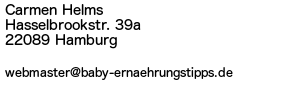 Bei weiter gehenden Fragen zu spezifischen Ernährungsproblemen wenden Sie sich bitte an Ihren Kinderarzt vor Ort. Hamburger können sich gerne in meiner Naturheilpraxis melden. Als Heilpraktikerin in Hamburg praktiziere ich u.a. mit dem Schwerpunkt Ernährungstherapie in Hamburg-Eilbek.